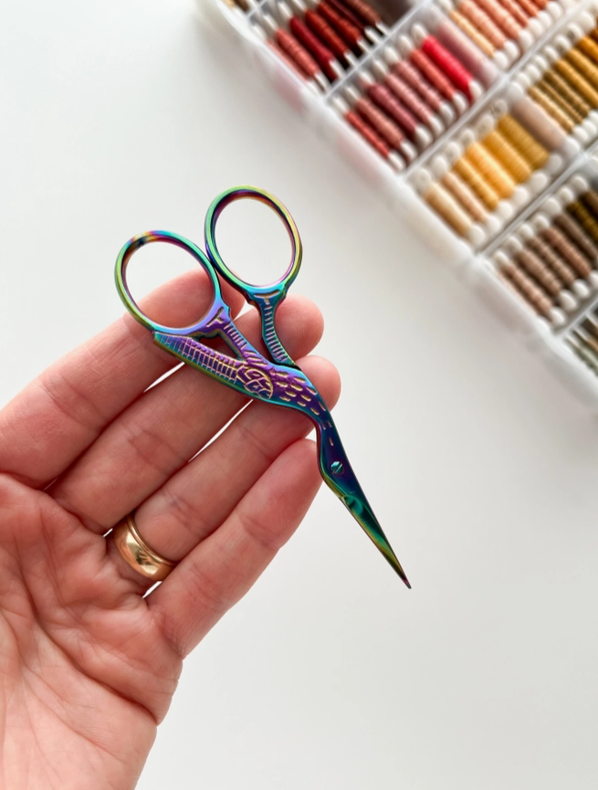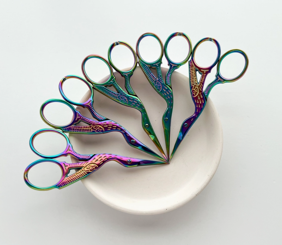 Small needlecraft scissors featuring a popular stork design are perfect for various needlework uses such as: embroidery, cross stitch, sewing, quilting, crochet, knitting and more.