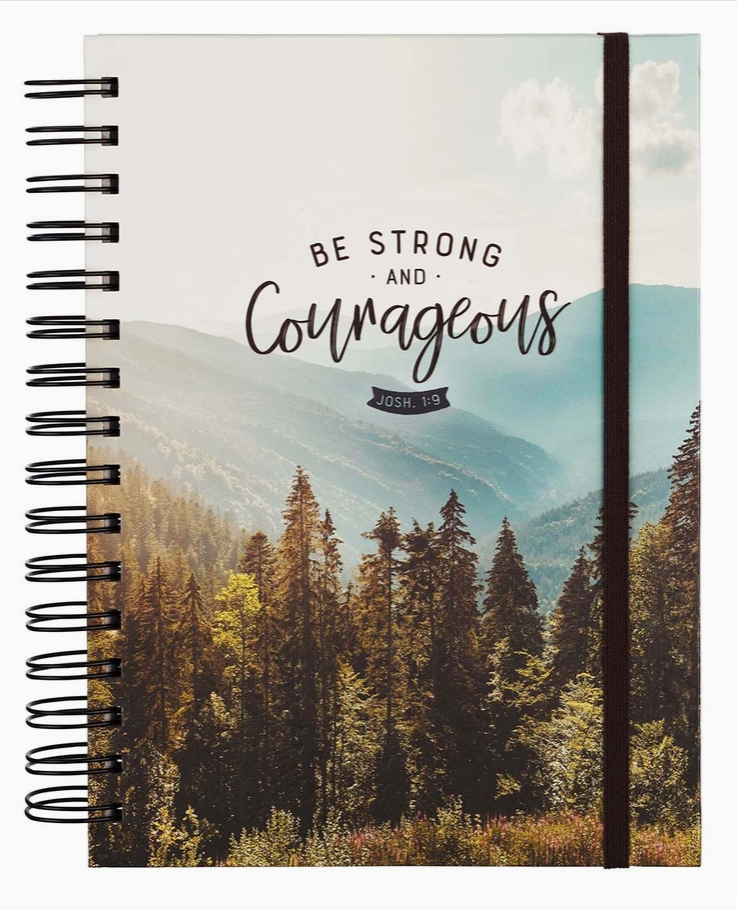 The Be Strong and Courageous Large Wirebound Journal with Elastic Closure is a stunning reminder that we are not alone in this life! Whether the sun is warmly shining down on us or a storm is blowing the trees sideways, we can trust God to provide what we need to walk through this life. This hardcover journal is great for use as a travel journal for that long-planned trip, or simply to note the adventures you encounter in daily life!