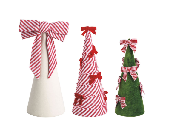 Bow Tree Sitters are a charming addition to your holiday decor, featuring a set of three beautifully crafted trees made from high-quality cotton and luxurious velvet. Each tree is adorned with elegant dimensional bows, adding a touch of sophistication and festive cheer to any setting. The set includes three different sizes to create a visually appealing display: the small tree measures 10 inches in height with a 4-inch diameter, the medium tree stands at 14 inches with a 5 1/2-inch diameter, and the large tree is 12 inches tall with a 5-inch diameter. These versatile decorations are perfect for tabletops, mantels, or as part of a larger holiday arrangement, bringing warmth and style to your home during the festive season.