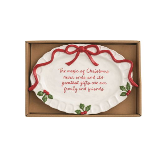 Celebrate the holiday season with our exquisite Christmas Tree Sentiment Plate, a perfect blend of artistry and functionality. Crafted from high-quality stoneware, this plate features a charming hand-painted design that captures the essence of Christmas cheer. The intricate raised in-mold detail adds a touch of elegance, making it a standout piece for your festive table setting. Measuring 7" x 10", it's ideal for serving appetizers, desserts, or as a decorative accent. Durable and stylish, this plate is a delightful addition to your holiday collection, sure to impress your guests and enhance your seasonal gatherings.