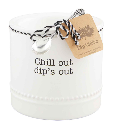 3-piece set. Removable ceramic dip dish nests inside beaded ceramic chiller to keep cool. Comes with stamped silverplate spreader.