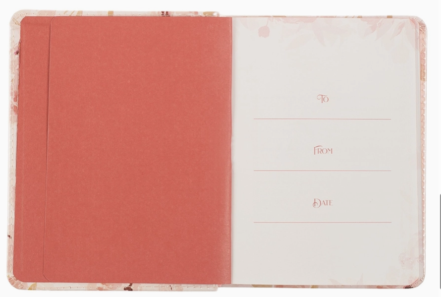 Start every day with an act of worship and devotion when you open the Daily Prayers For Women Pink Floral Faux Leather Devotional. We all know how busy a woman's life can be and how quickly the good intention of cultivating a prayer life can get swept up in the care for families, worries about children, and deadlines at work. This devotional is focused on starting your day with the most important and urgent thing you can do: prayer.