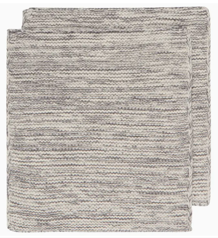 Sets of two dishcloths are soft on the hands yet tough on dirty dishes. Knit by hand with heathered cotton yarns. Part of the medley collection of color-coordinated kitchen and table linens from Danica heirloom.
