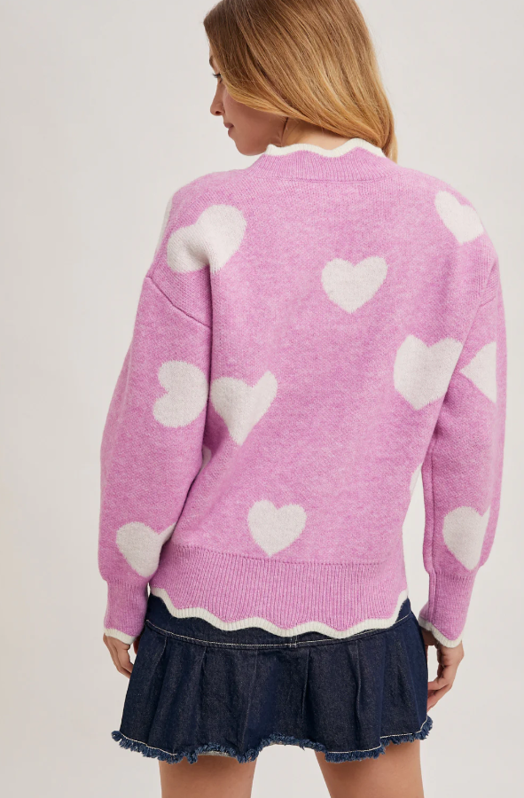 Crafted for comfort and style, this sweater boasts a soft, cozy texture and a relaxed fit, making it perfect for casual outings or layering in cooler weather. The unique scalloped edges lend a feminine flair, ensuring this sweater stands out in your wardrobe.