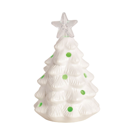 Ceramic sitter features LED light-up interior. Add to your favorite tray or just use as a shelf sitter. Batteries included.