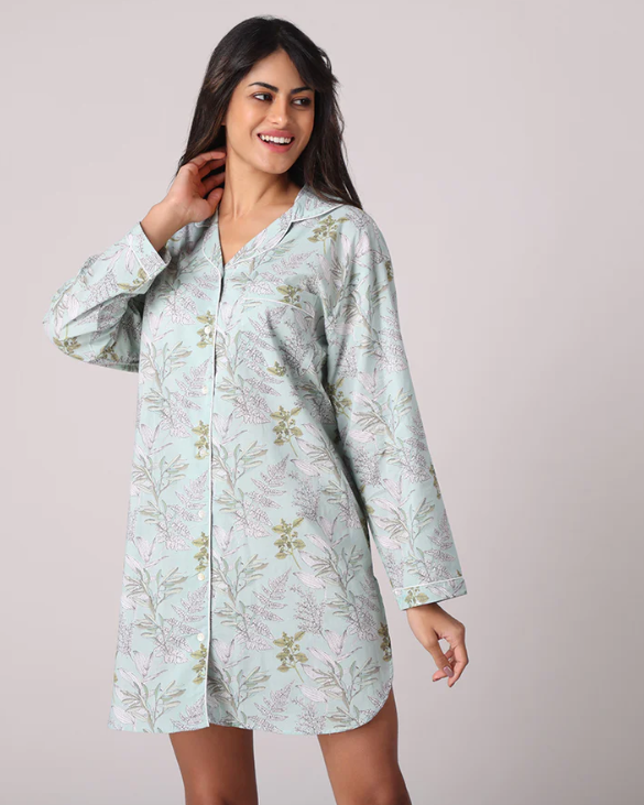 This cute nightshirt in light blue features a lovely floral pattern. Goes great with the matching Serena Robe.